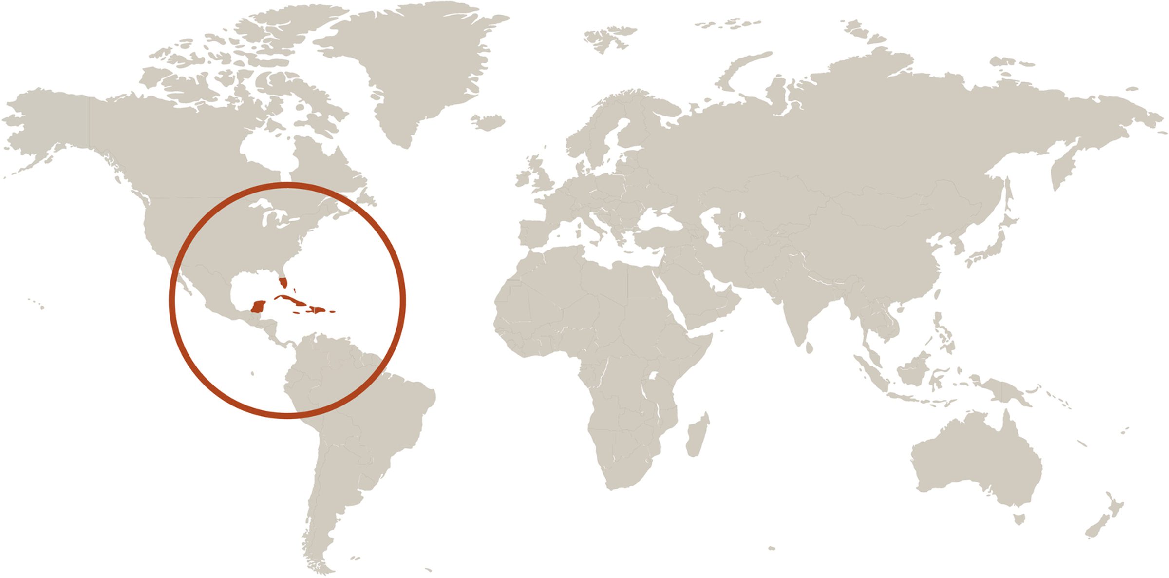 Bahamas, West Indies, Mexican Yucatan, northern South America, Galapagos Islands; occasionally coastal United States from the Carolinas to Texas