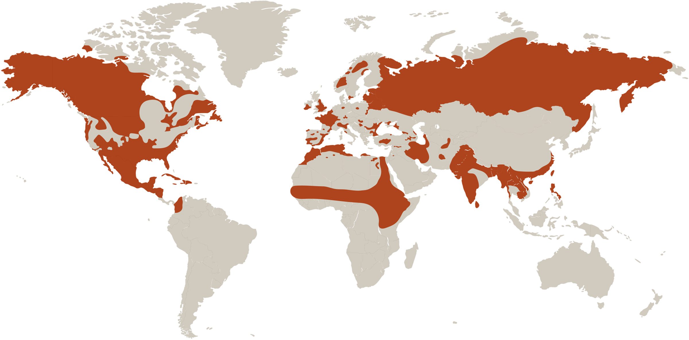 North America, Europe, Russia, Asia; winters in northern Africa, Pacific Islands