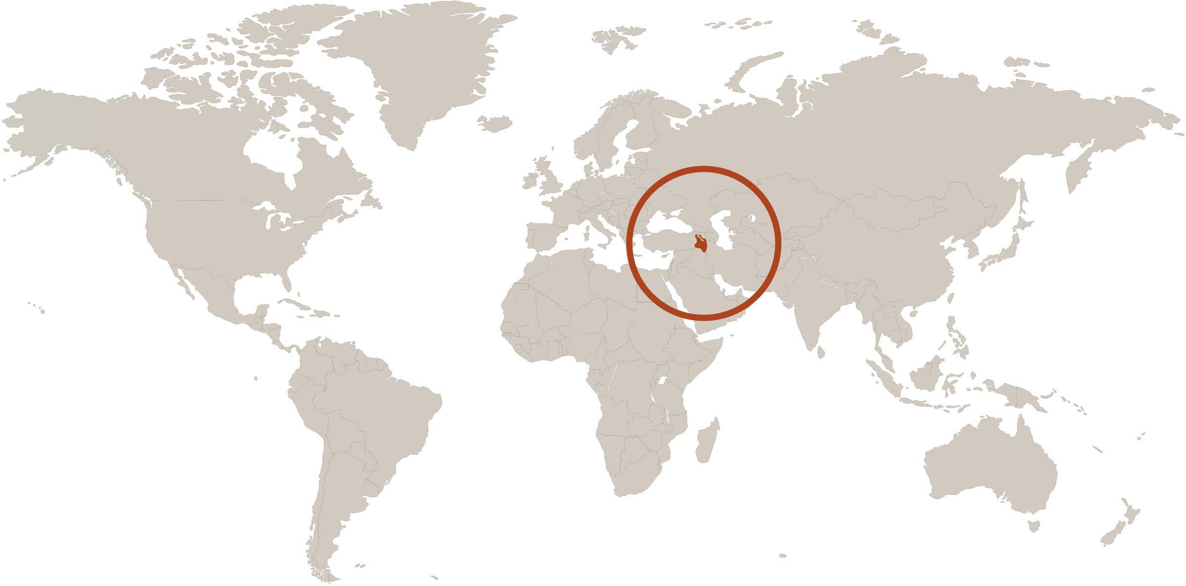 Armenia and surrounding western Asian countries such as Iran, Turkey, and Iraq