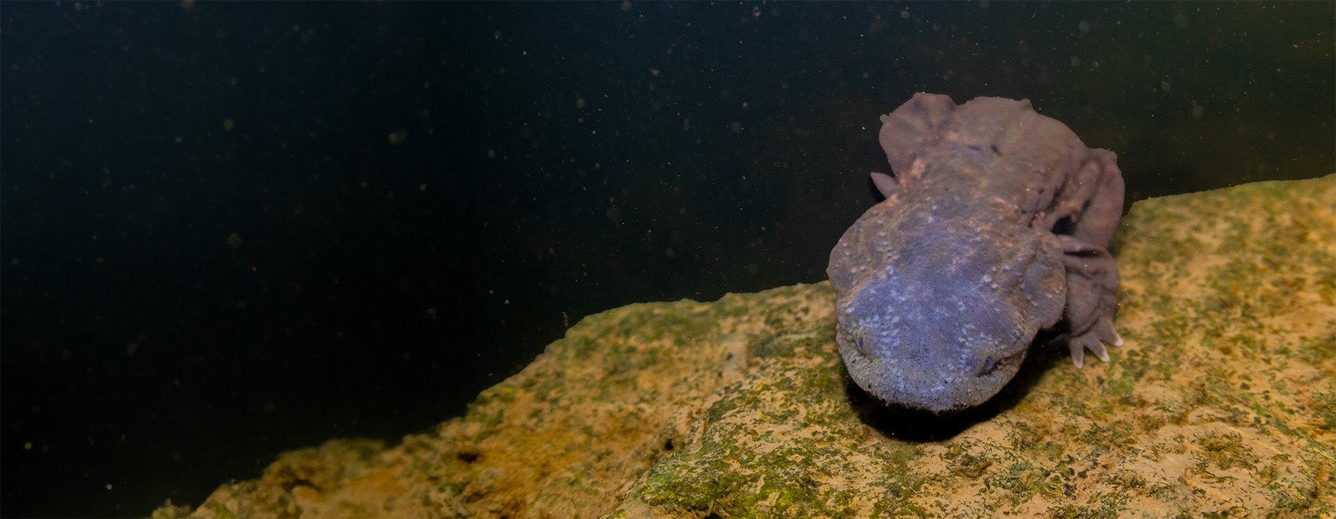 There are two subspecies of hellbender, the eastern and the Ozark. Missouri is the only state where both occur, and both are threatened with extinction. Over the past 40 years, hellbender populations in Missouri have experienced drastic 70% declines due to stream impoundments, disease, pollution and siltation. Because of these major declines, this native species has been a major conservation priority for the Saint Louis Zoo for some time.