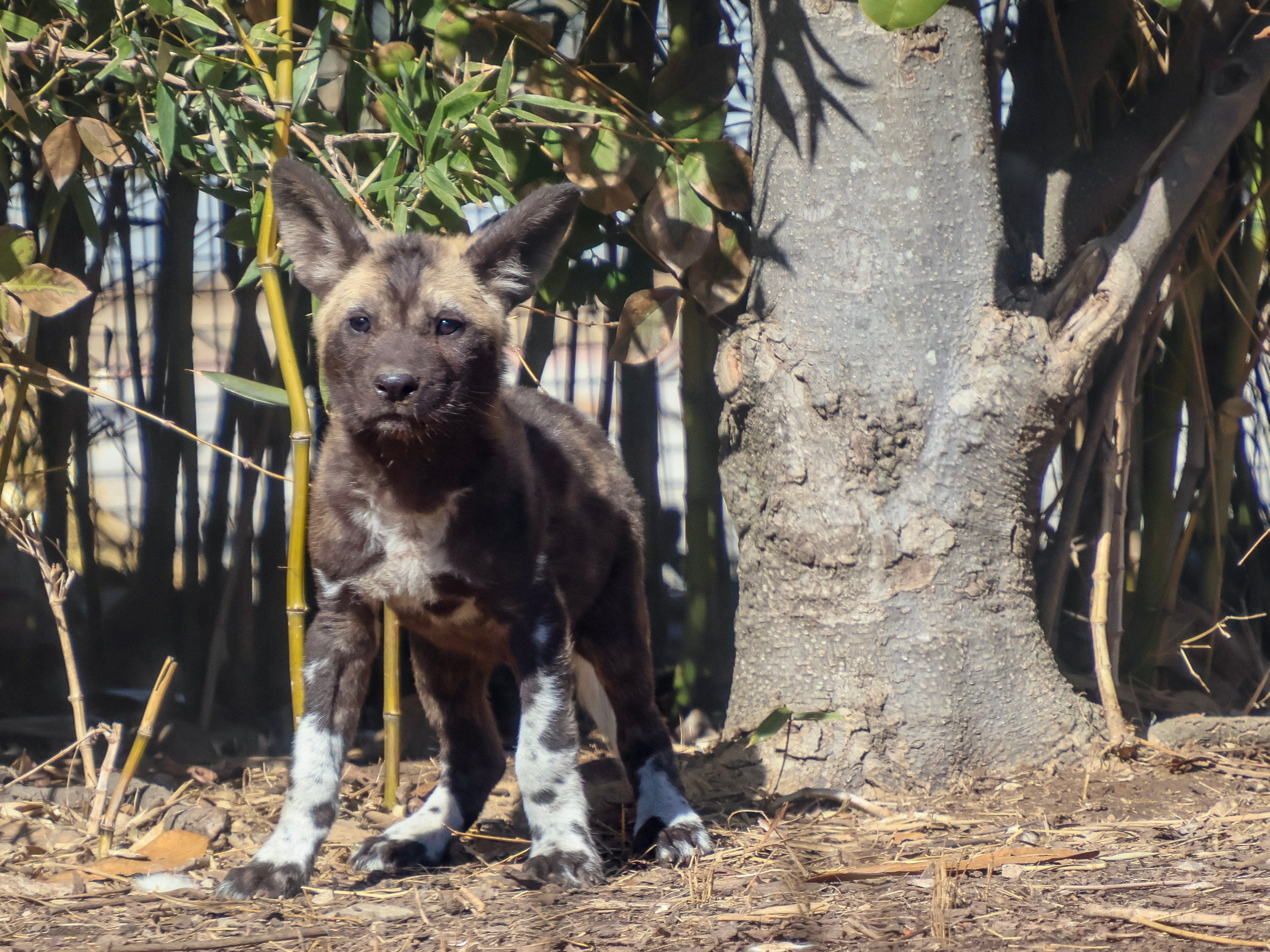 Time for a PUPdate! Our resident African painted dog pups have opened their eyes! These curious, energetic pups are bonding closely with mom, Chewie, who is doing an excellent job as a patient and attentive first-time parent. The puppies are even starting to explore beyond the maternity den, following closely behind mom.