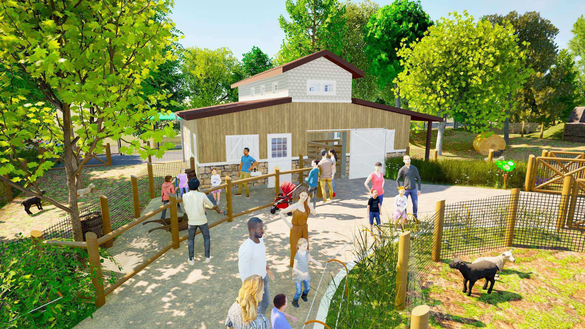 Babydoll sheep — A walk-through barn and spacious barnyards will be home to a flock of adorable sheep. Guests can meet keepers as they provide care for the animals.