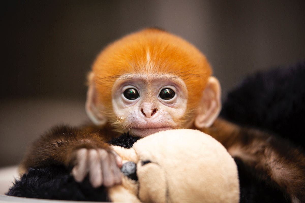 Just in time for Halloween, we share with you our newest and cutest li’l pumpkin-haired baby, Rhubarb! The 1-month-old female Francois’ langur was born on September 30, 2022, to mom Dolly and dad Deshi at the Michael and Quirsis Riney Primate Canopy Trails at the Saint Louis Zoo. Rhubarb is the first Francois’ langur ever born at the Saint Louis Zoo and an important birth for this endangered species. The langur family are bonding in a private area of the habitat and may not be on view.