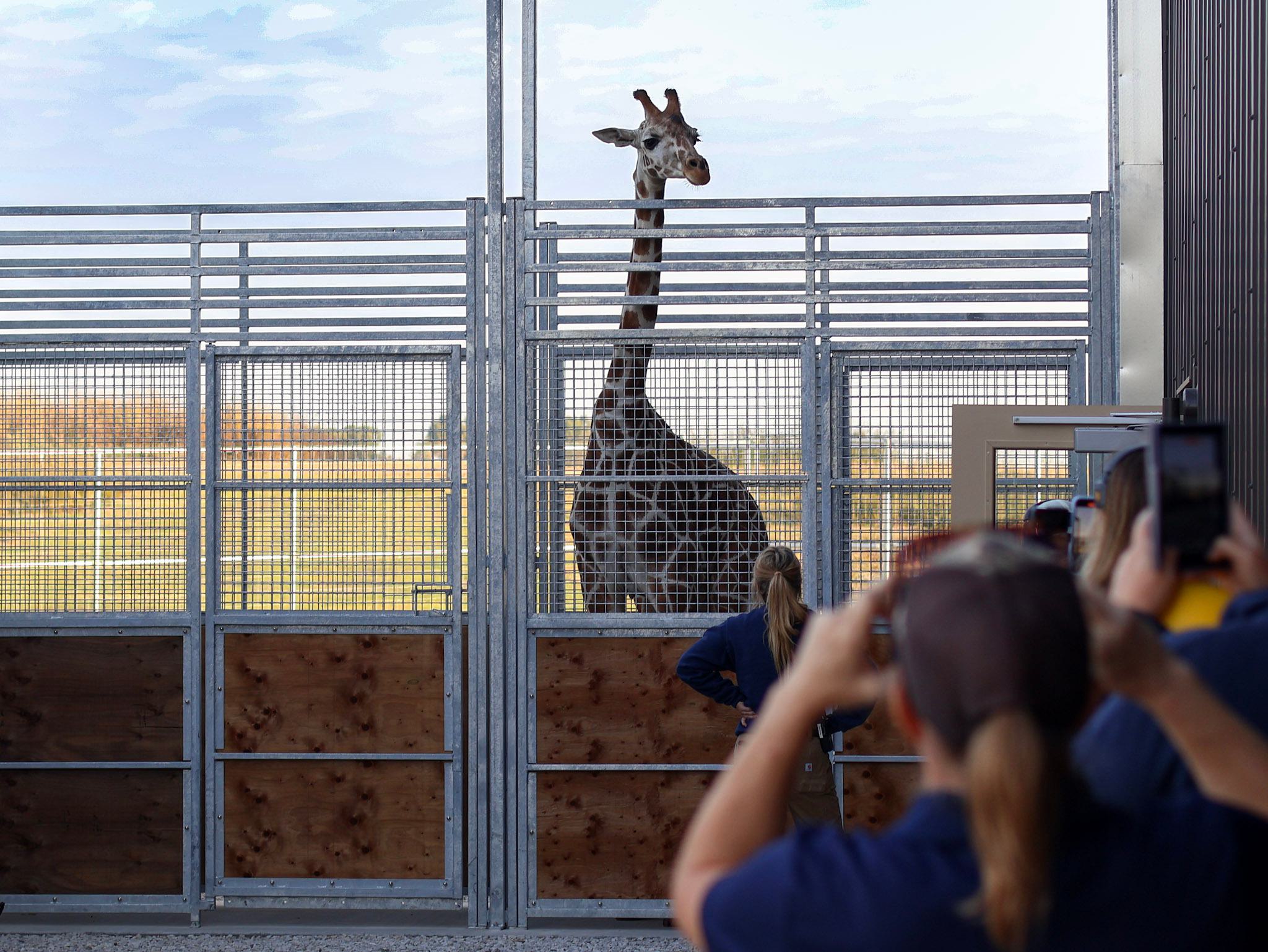 Mo, a 21-month-old male reticulated giraffe from Reid Park Zoo in Tucson, Arizona, arrived on Oct. 11. A few days later, Daniel, a 20-month-old reticulated giraffe from The Living Desert Zoo and Gardens in California, joined him. Not yet fully grown, the young giraffes today stand at 11 and 13 feet tall.