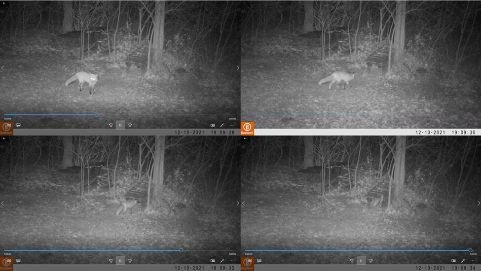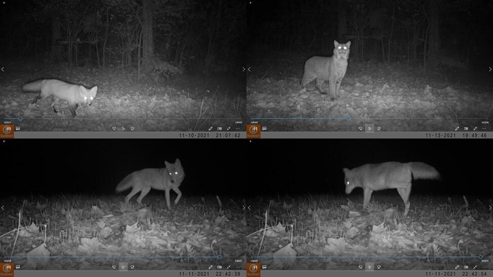 Photos of a fox moving around the trap. It took over a month before the team was able to safely capture the fox. Credit: Tyson Research Center.