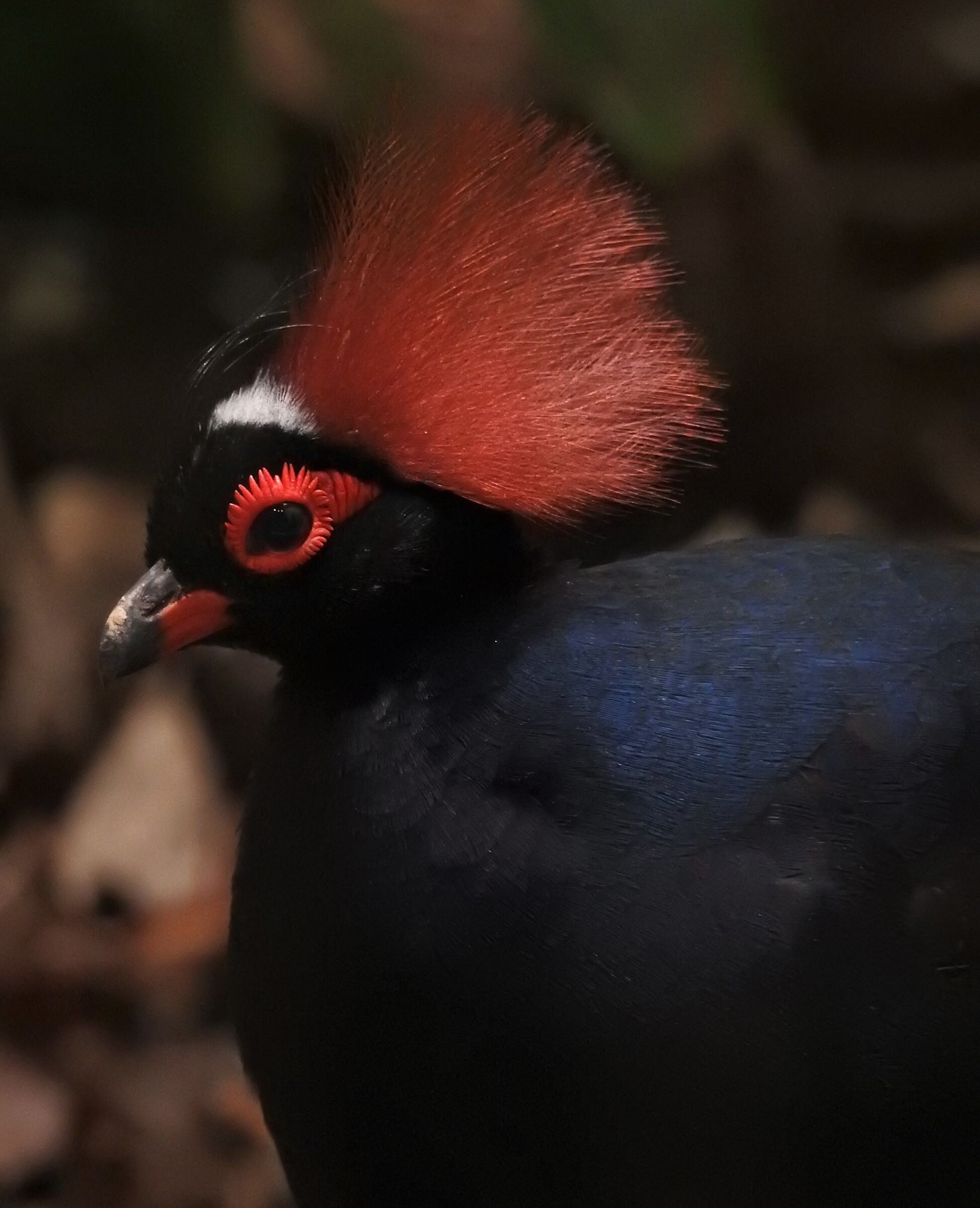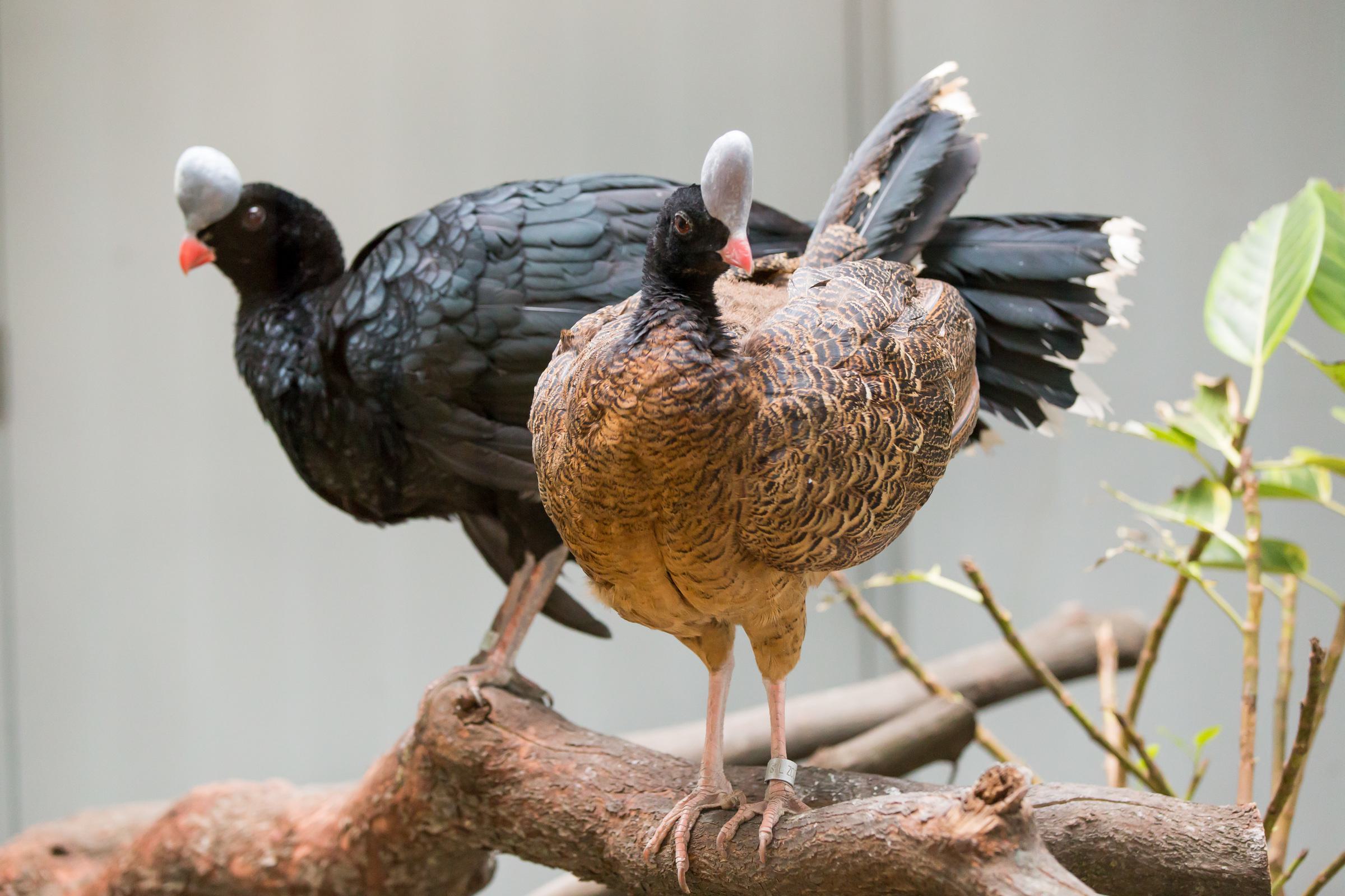 Crested wood partridges have a strong bond between their partners. The males are nothing but gentlemen. With this pair of birds at our Zoo, we often see the male offering the female food items. When they are fed their daily diet or treats, he offers her food until she is full and then will eat some himself. If they wander too far away from one another, they will vocalize and then one quickly returns to the other.
