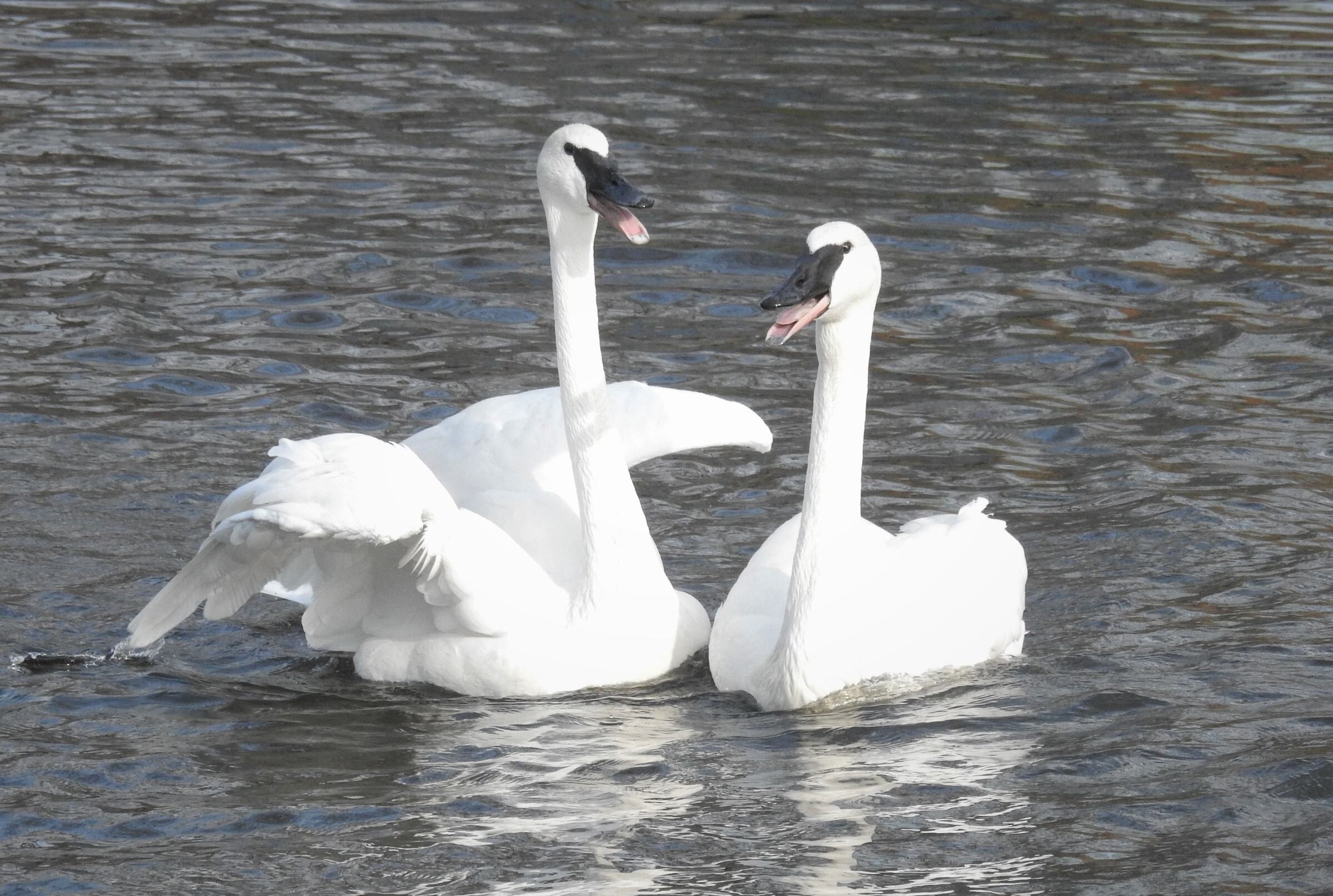 Talk about couple’s goals! This pair takes the cake. Though Charlie and Marilyn are a newly formed pair, only having been together for one year, they already have a strong bond. Usually they are seen moving around the lake, side by side. They often engage in a courtship display where they spread their wings and shake them, sometimes while bobbing heads and trumpeting in unison. In the future, when eggs are laid, we predict that Charlie will be very protective and will defend Marilyn and their offspring by charging at any threat while hissing and smacking his wings. This can be very intimidating due to the size of trumpeter swans. It is dangerous to any threat; the force of the birds’ wing smack is strong enough to break bones.