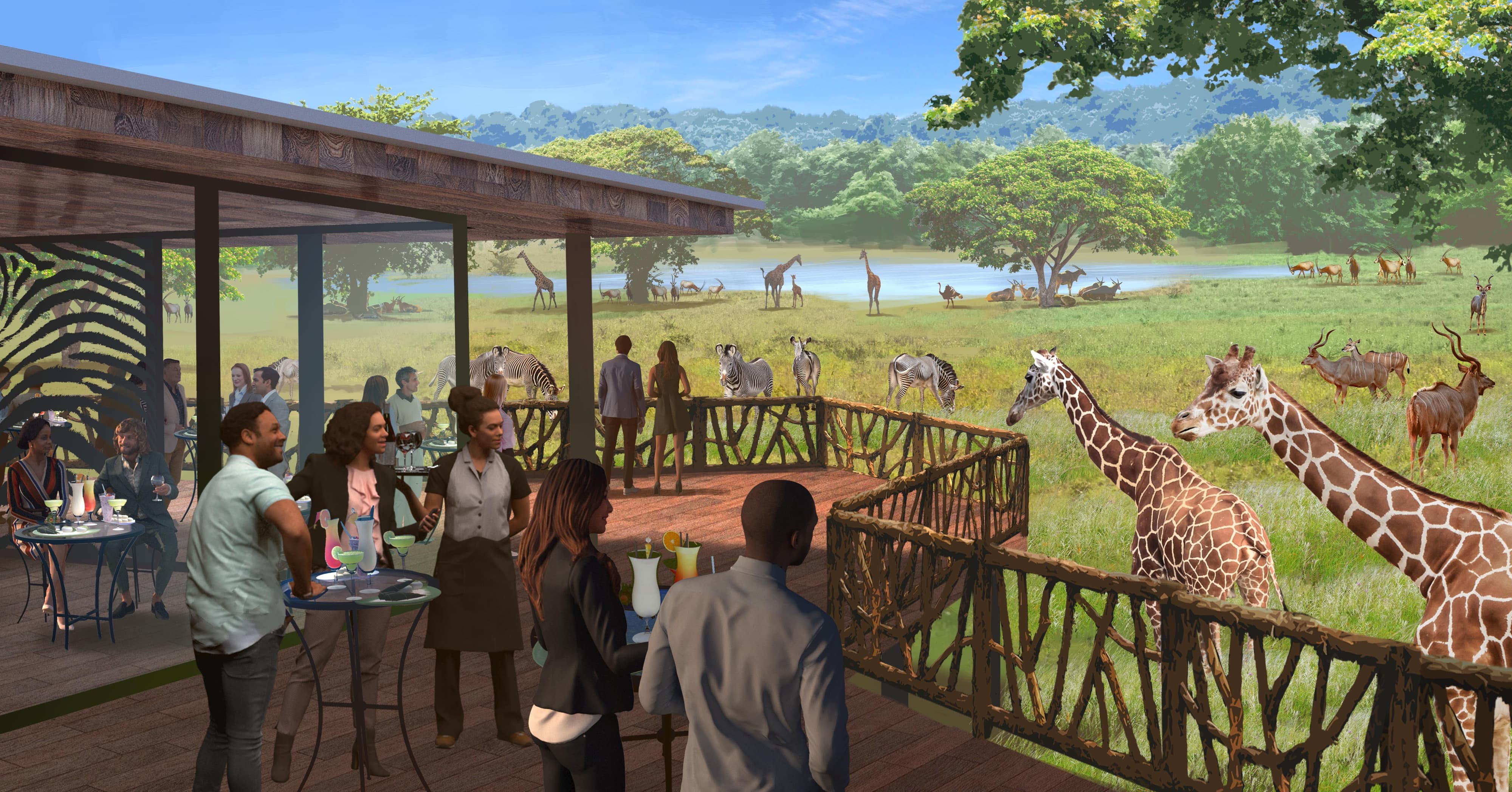 - Event center – Book a special event at WildCare Park. The event center will accommodate smaller functions and large celebrations as there will be two ballrooms. Located in the center of WildCare Park, there will be breathtaking views of the Savanna Safari and incredible experiences, like giraffe feedings right off of the deck of the event center.
