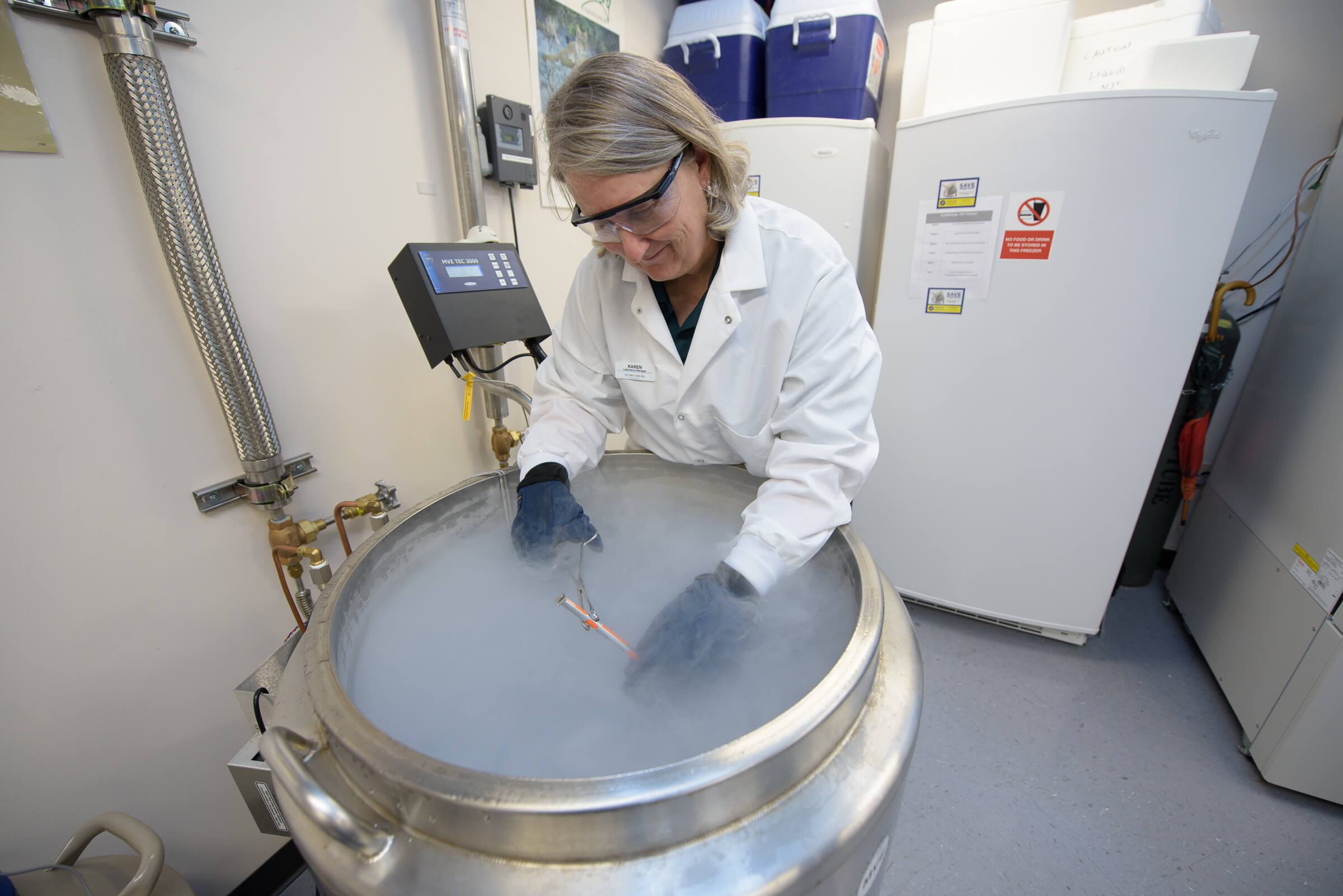 Researchers working in the Zoo’s “Frozen Zoo” facility. Credit: Saint Louis Zoo