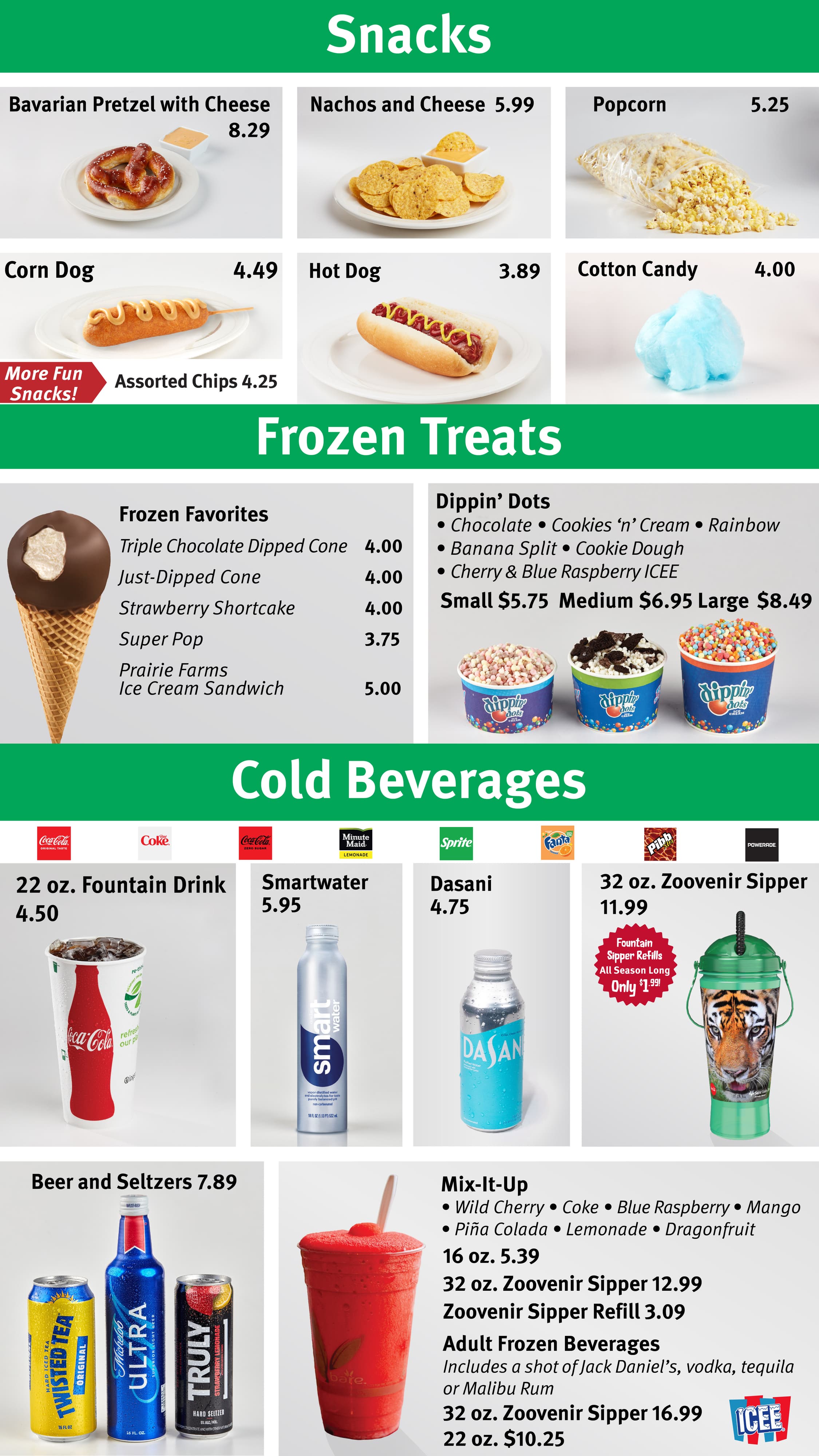 Tundra Treats offers a large selection of fruity flavors of our frozen ICEE beverages, and features the largest variety of beer, cider, and spiked seltzer in the Zoo for adults age 21 and up.